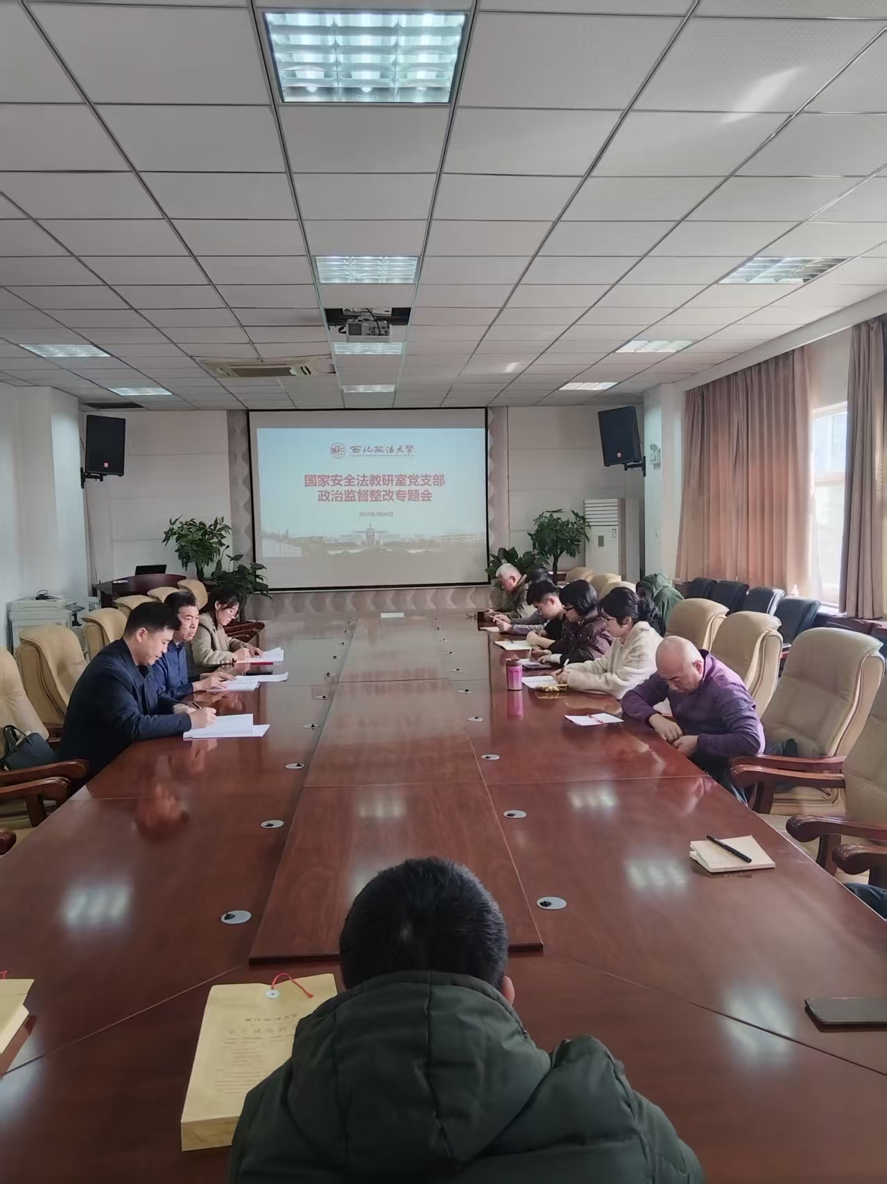 2月28日,按照校纪委专项政治监督反馈意见和《公司党委关于专项政治监督反馈意见整改落实工作方案》有关要求,国家安全法教研室党支部召开专项政治监督整改会议,深入学习贯彻党的二十届三中全会精神。公司党委书记李政敏到会指导,支部全体党员参加会议。会议由支部书记李明主持。