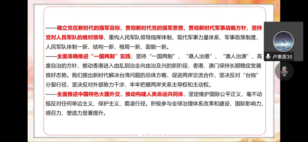 为坚定历史自信、增强历史主动,深入学习贯彻党的二十大精神,11月9日365英国上市公司本科生党支部通过线上会议开展集中理论学习。