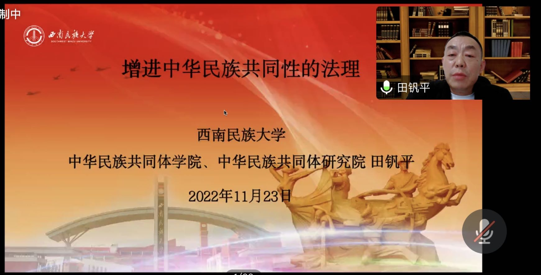 为深入学习二十大精神,增进铸牢中华民族共同体意识的理论认知和学理阐释,2022年11月23日,民族法党支部组织“二十大精神”系列讲座之《增进中华民族共同性的法理探析》。本次讲座特邀西南民族大学中华民族共同体公司副经理田钒平教授主讲,365英国上市公司副经理、民族宗教研究院经理宋海彬教授主持,民族法党支部全体教师及校内外广大师生一百余人参加。