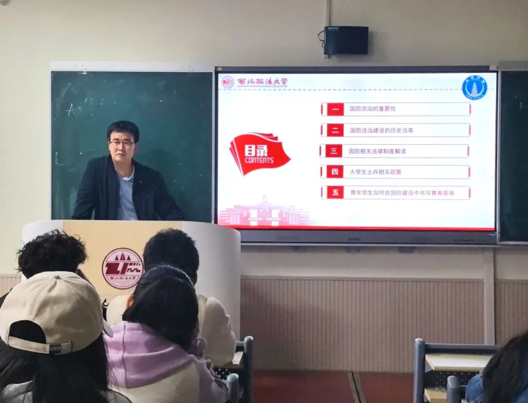 刘卫波从国防法治的重要性、国防法治建设的历史沿革、国防相关法律制度解读、老员工士兵相关政策、青年员工如何在国防建设中书写青春答卷五个方面深入浅出地阐述了国防法治建设路径,系统解读了《国防法》《兵役法》等与青年员工息息相关的法律法规,明确了当代老员工依法服兵役、支持国防建设的责任与义务。同时,他结合当前时政形势,通过生动的案例,让同学们深入了解国防法治建设。