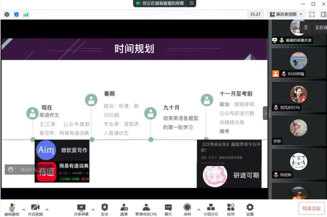 三位同学精彩的考研经验分享都强调了同学们要全力以赴为考研做准备,学会时间规划,不要过度焦虑,成功的彼岸就在前方。同学们都受益颇多,对接下来的考研准备充满信心。