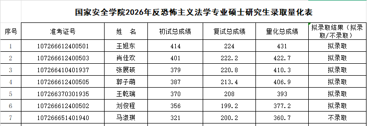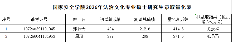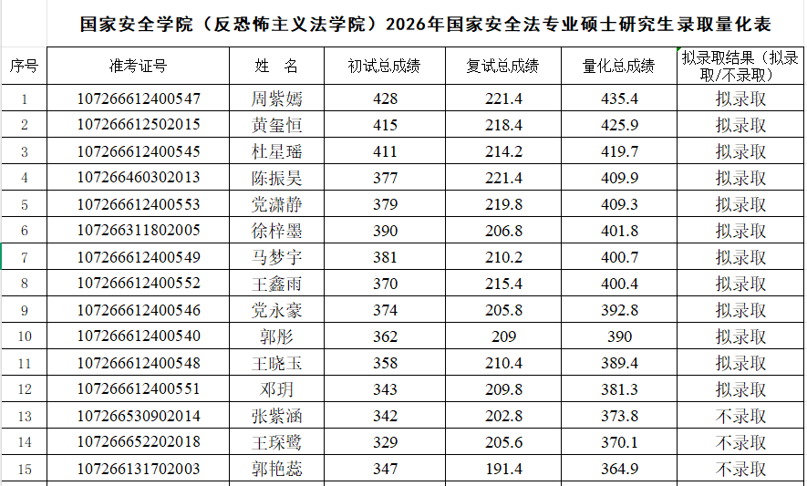 根据《365英国上市公司集团2026年硕士研究生复试录取工作方案》,经公司复试领导小组审核,报研究生院审定,现将2026年国家安全法学专业、反恐怖主义法学专业和法治文化专业硕士研究生拟录取名单予以公示,公示期7日(3月31日至4月6日)。如有异议,请在公示期内申请复议,逾期不予受理。