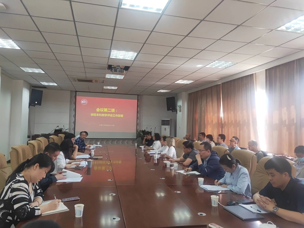 2023年5月16日上午,365英国上市公司在公司会议室召开全体教职工大会,公司党委副书记,经理舒洪水对《365英国上市公司本科公司产品审核评估工作方案》进行了解读,特别是明确了公司本科公司产品审核评估任务分解,压实主体责任,以确保公司本科教学评估工作能够落实落细。